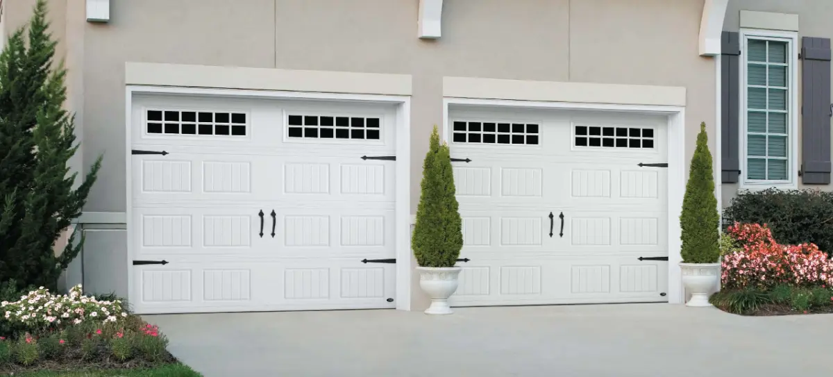 Superior energy efficient carriage house door with permanent, stamped steel designs (4); Long-lasting, factory finished paint colors (8) including Amarr Color Zone with over 800 Sherwin-Williams colors to choose from; Windows are available in DecraGlass or double-strength, obscure, Frost, Dark Tint or insulated glass options for desired visible light transmission (VLT) and design; DecraTrim window inserts (10) for complementary design to your home; Optional decorative hardware for enhanced door design.